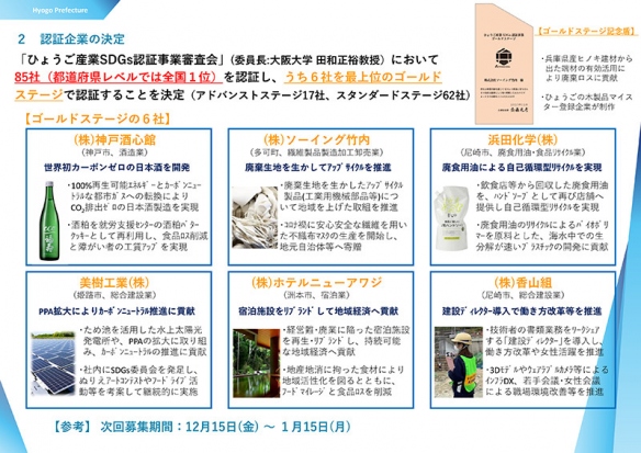 【ひょうご産業SDGs認証事業 第1回認証企業 ~県内6企業を初の“ゴールドステージ”企業として決定~】