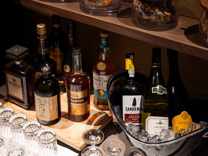 専用ラウンジでは、チェックイン時のウェルカムデザートをはじめ、夕食前のアペリティフや夜のディジェスティフタイムなどの時間帯に合わせて、スイーツ・スナックとともにドラフトビールや地酒をはじめとするアルコールのラインナップをご自由にお愉しみいただけます。